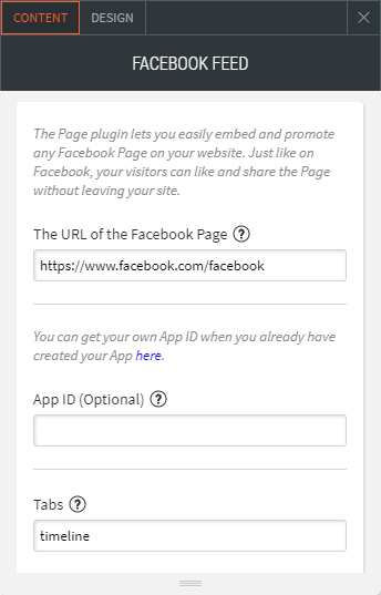 Show your Facebook page's feed and let your visitor's like and share your page without leaving the website.