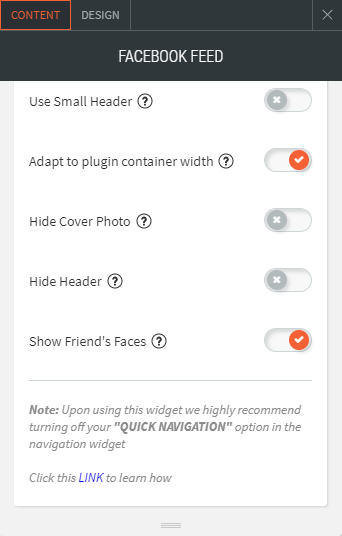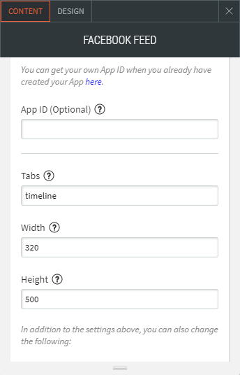 - Control the widget's height, width and more options that will show to your Facebook Feed widget.