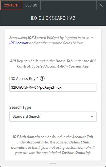 Search Listing/Properties with the use of the IDX Quick Search Widget.