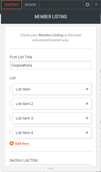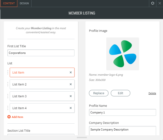 You can list your Corporate or member listings with their details.