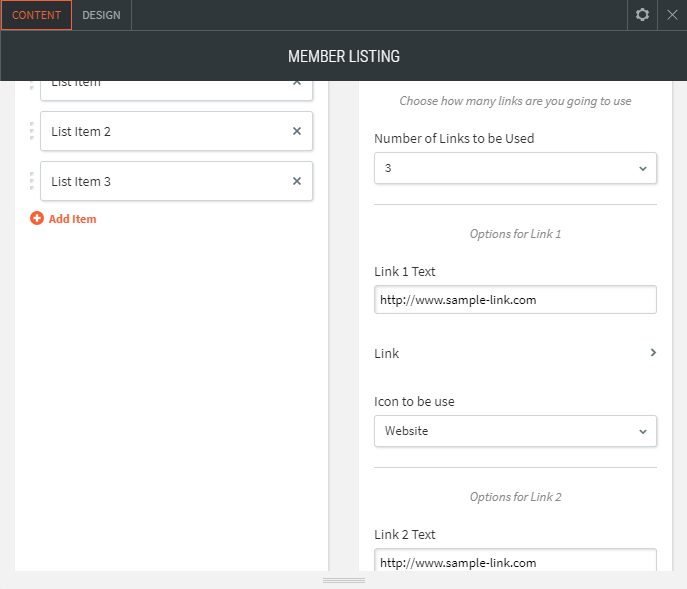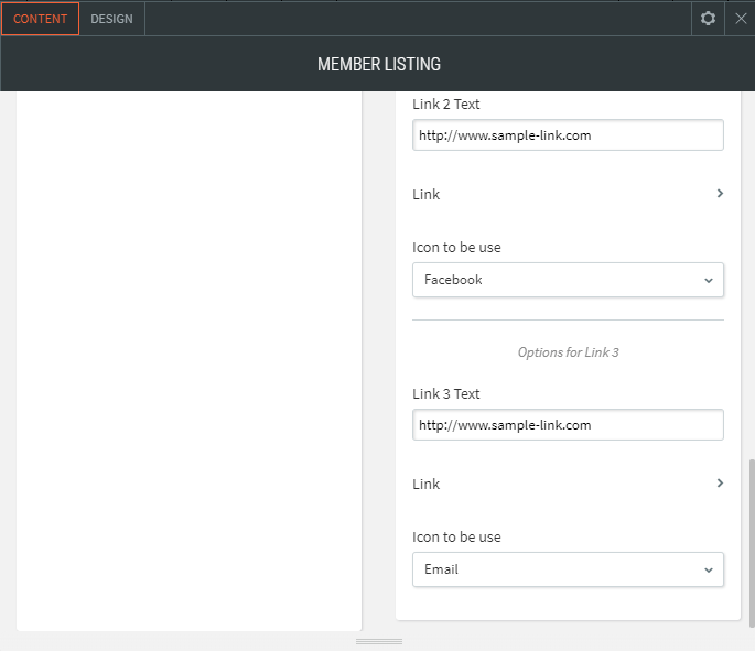- Add logos/image for different members with description and maximum of 3 links.