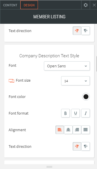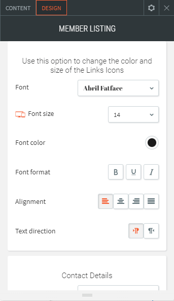 - Modify the font style, color, size and text alignment of the titles, descriptions and links.