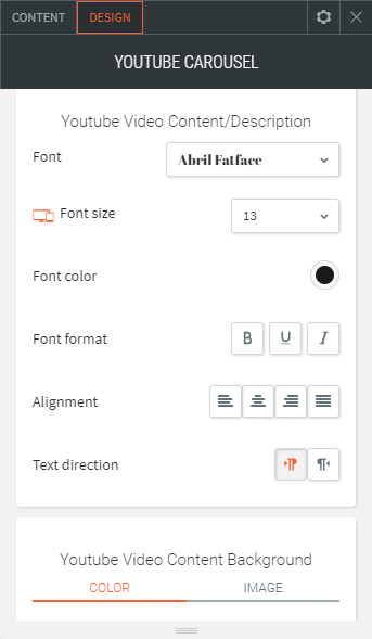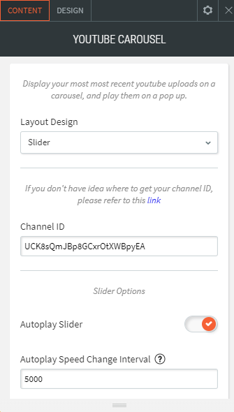 Display your recent youtube uploads on a carousel, and play them on a pop up.