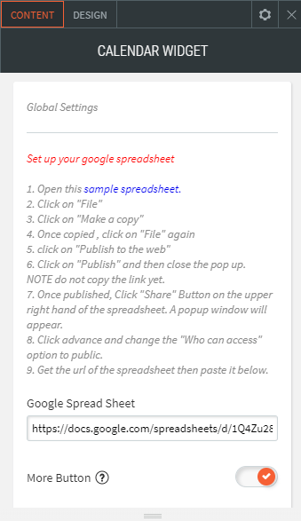 Display a full-size drag-n-drop event calendar. Connected to google spreadsheet for your event