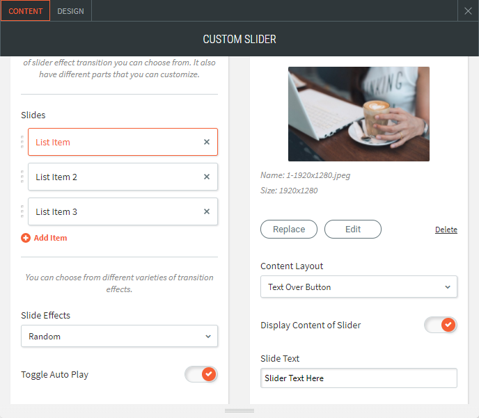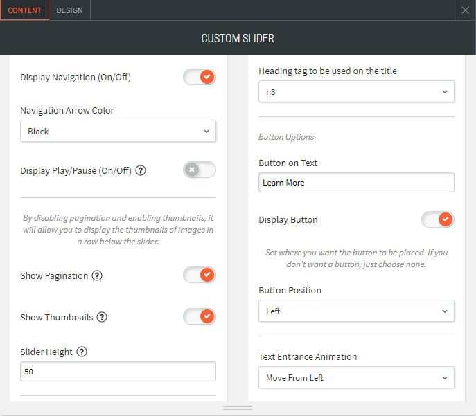 - You can modify its animation speed, slider effects, arrow navigation, pagination and add title, text and button for each slide.