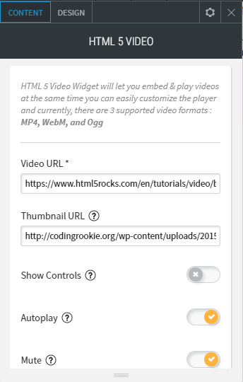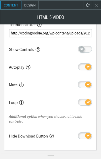 - You can also manage on how the video will play with the auto-play, mute, loop settings.