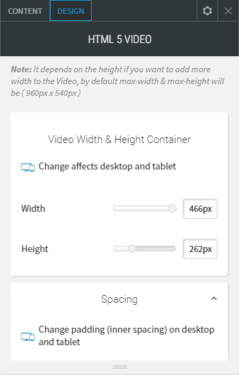 - You can resize the height and width of the video player.